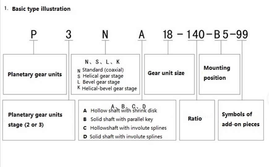 1. P series helical-bevel planetary gear units adopt modular design realizes variable combination.
